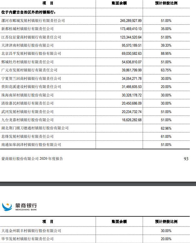 据悉,原包商银行是蒙商银行前身,蒙商银行2020年年报显示,该行共持有内蒙古自治区以外的村镇银行18家,遍布河南、江苏、天津、北京、山东、四川、宁夏、贵州、广东、山西、湖南、吉林、湖北、大连等十几个省市。