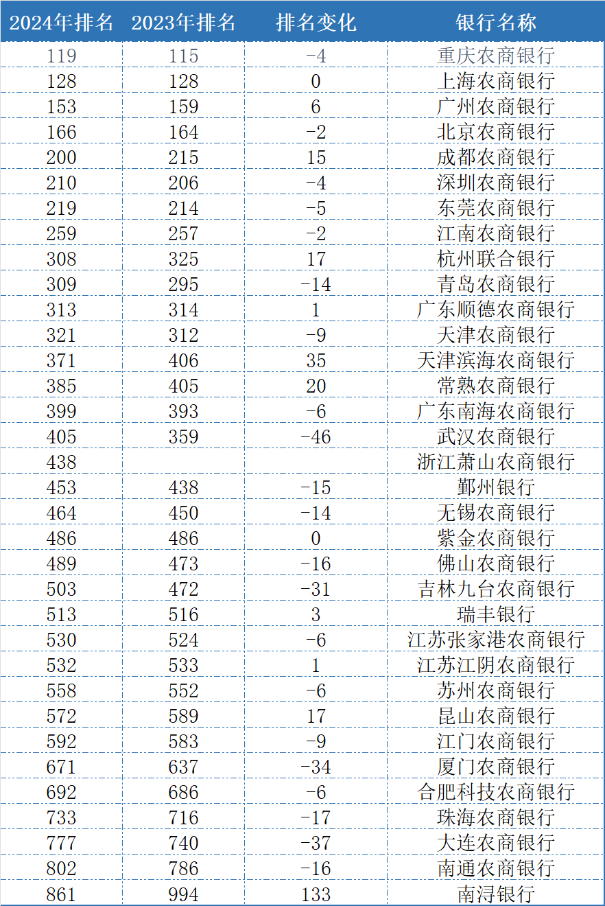 最全榜单来了!这34家农商行入围2024年全球银行1000强