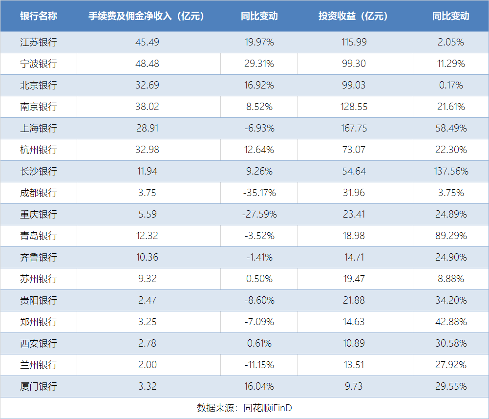 投资收益成为2025年三季度城商行营收结构中的亮点。上海银行投资收益达167.75亿元,同比增长58.49%。南京银行投资收益128.55亿元,同比增长21.61%。