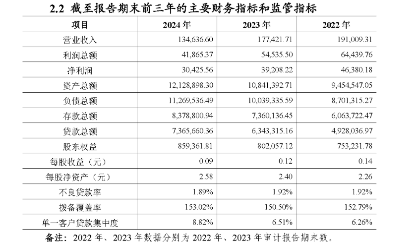 业绩方面,达州银行年报显示,2024年该行实现营业收入13.46亿元,实现利润总额4.19亿元,实现净利润3.04亿元。该行近年来营收净利呈下滑趋势。联合资信在达州银行2024年跟踪评级报告中表示,近年来,达州银行收入结构较为单一,营业收入有所收缩,同时较大规模的减值计提对利润实现形成一定侵蚀,其盈利指标处于较低水平,且考虑到其拨备面临计提压力,未来盈利水平或将持续承压。