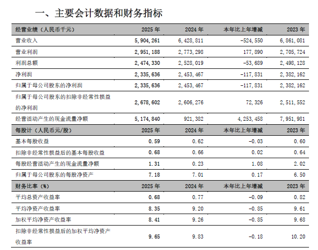 在成本控制方面,营业支出29.53亿元,同比下降19.22%,其中信用减值损失6.89亿元,同比下降49.51%,为利润增长提供了有力支撑。最终实现营业利润29.51亿元,同比增长6.41%;净利润23.36亿元,同比下降4.80%。